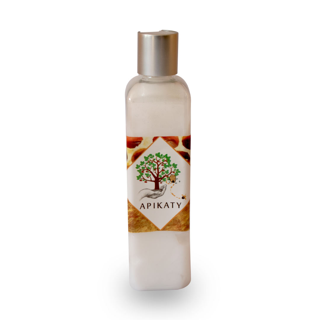 Apikaty elabora fórmula de balsamo a base de miel, aceites escenciales, extractos de hierbas y propoleo. Fortaleciendo el foliculo piloso, hidratando el cabello y eliminando microorganismo que producen la caspa, y dejando el cabello sedoso y brillante.